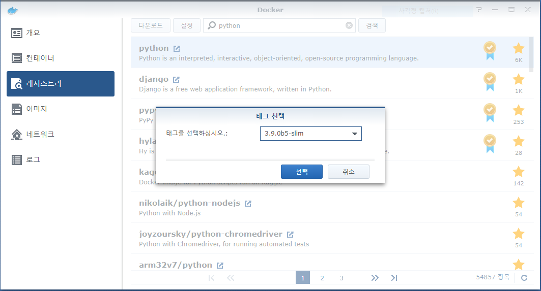 저는 복잡한 프로그램을 돌릴 예정이 아니기 때문에 python 3.9 slim 이미지를 받아 사용했습니다.