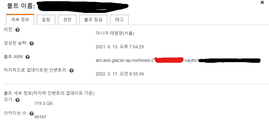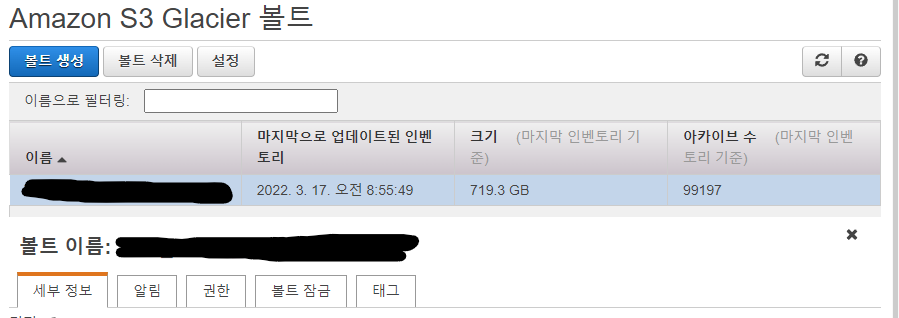아카이브가 남아있으면 Glacier 볼트를 삭제할수가 없네요.
